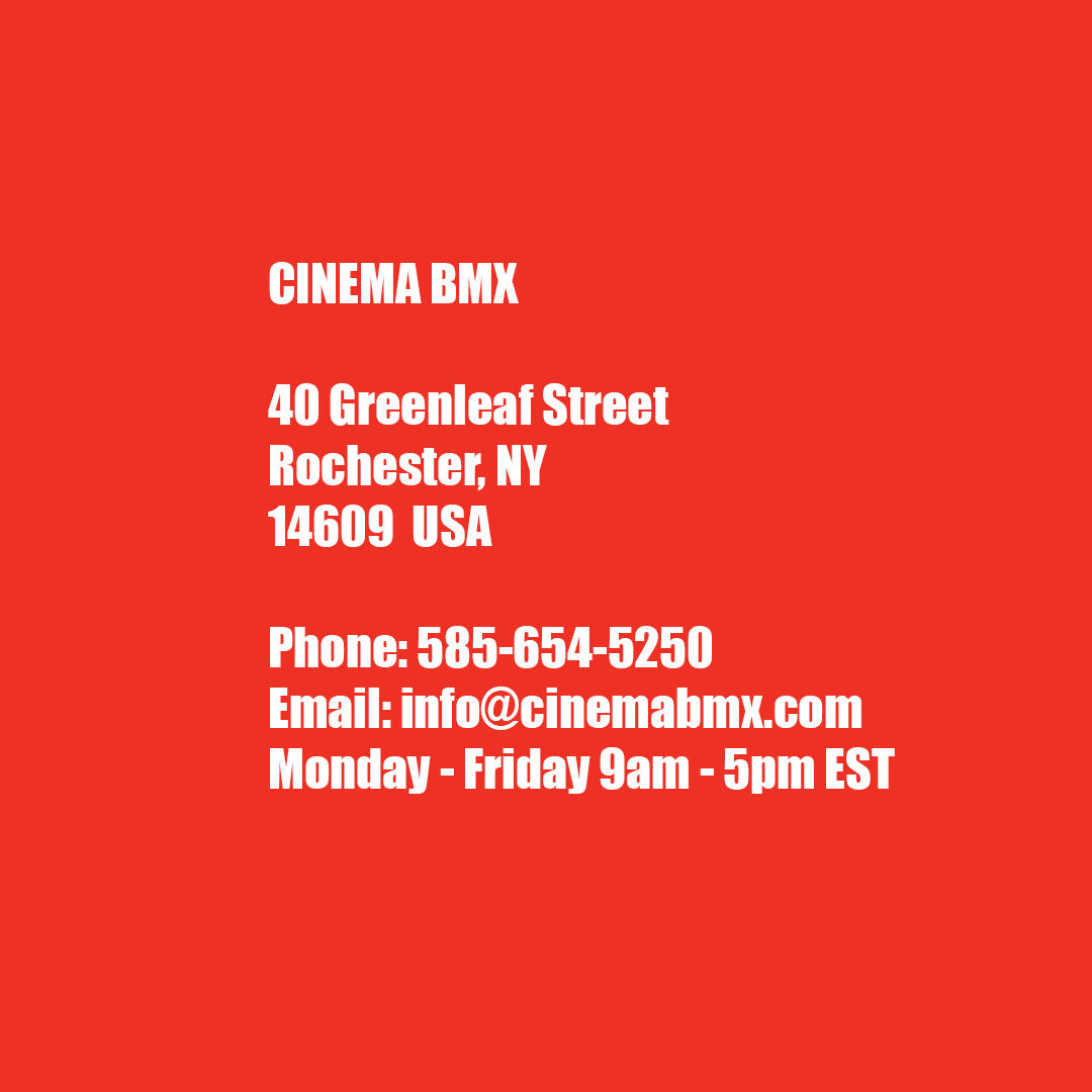To find your nearest authorized Cinema dealer in the US or internationally, please use the Dealer Locator here. All Cinema products can also be found at most major BMX mail orders worldwide!